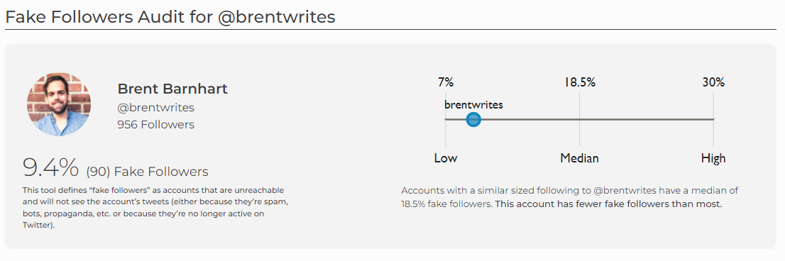 توفر أدوات مثل SparkToro تقرير متابع زائف مجاني يمكنك استخدامه لتقييم مدى مصداقية جمهورك بسرعة.