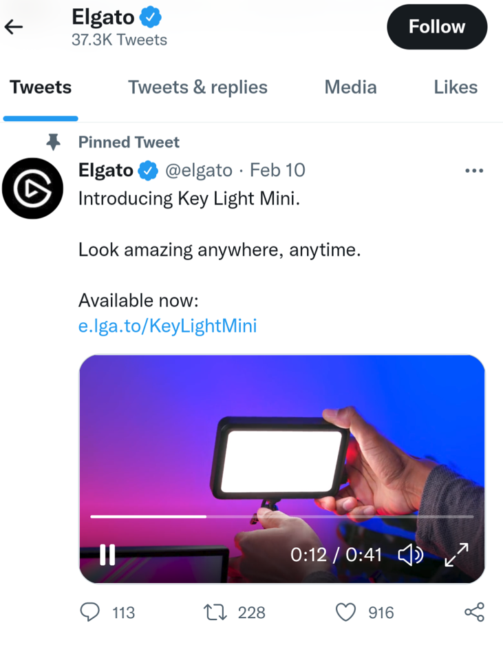 للأشخاص الذين يزورون ملفك الشخصي لأول مرة ، هذه التغريدة هي مقدمتك كعلامة تجارية. من الواضح أنك تريد جعل تغريدتك المثبتة ذات أهمية ، وهذا هو السبب في أن العديد من العلامات التجارية تستخدمها كمساحة من أجل: