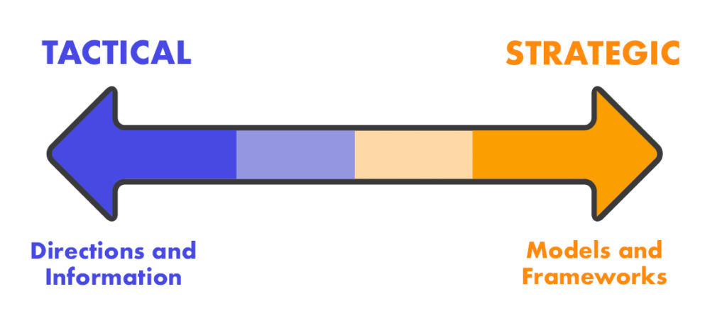 يعتبر التفكير في المكان الذي يقع فيه جمهورك المستهدف في النطاق "التكتيكي مقابل الاستراتيجي" طريقة جيدة لمعرفة أنواع المحتوى التي قد يستمتعون بها أكثر.