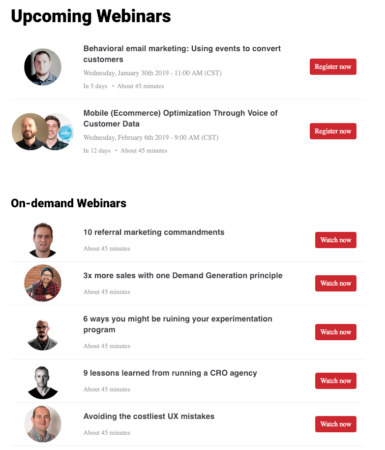 يتعاون موقع ConversionXL مع مجموعة متنوعة من خبراء التسويق في سلسلة ندواتهم المستمرة عبر الإنترنت.