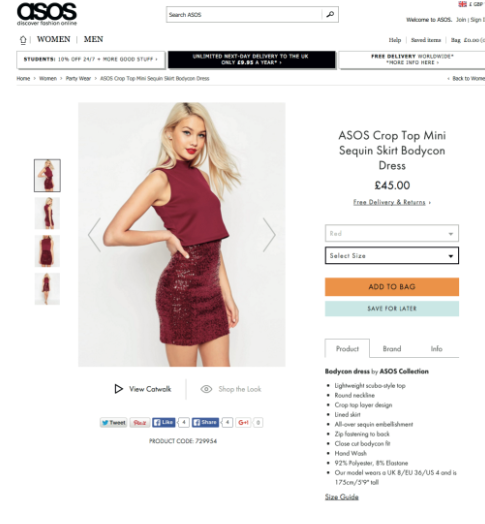 هنا ، يمكنك أن ترى أن ASOS تستخدم علامات التبويب بشكل فعال لإعطاء خيار استهلاك الكثير من المعلومات دون اكتظاظ الصفحة.