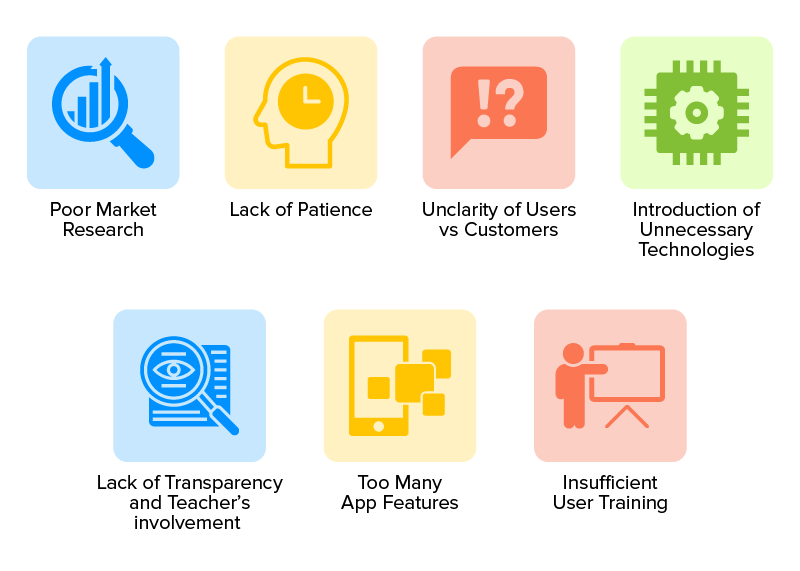 في مثل هذا السيناريو ، تجد الشركات الناشئة التي تقفز إلى الصناعة التعليمية دون أداء واجبات منزلية مناسبة ، ويعرف أيضًا باسم أبحاث السوق والتحليل التنافسي ، صعوبة في التمييز بين أفكار التطبيقات "الضرورية" و "الفاخرة" ، وفي النهاية تفشل في اختيار أخير.