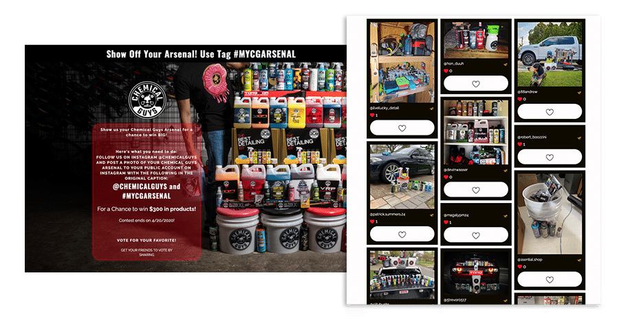 Die Chemical Guys verwenden den Marken-Hashtag #mycgarsenal, um nutzergenerierte Inhalte zur Anzeige auf einer Landingpage einzubinden