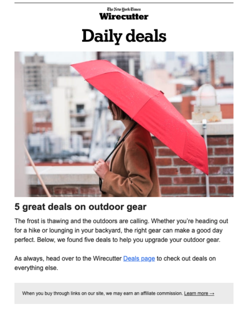 Werfen wir einen Blick auf einige Beispiele für E-Mail-Newsletter, die erfolgreich Affiliate-Links enthalten.