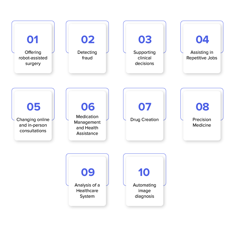 Es ist eine der häufigsten Anwendungen von KI im Gesundheitswesen. KI und kollaborative Roboter haben Operationen in Bezug auf Geschwindigkeit und Genauigkeit revolutioniert. Diese Systeme können komplexe chirurgische Eingriffe mit reduziertem Risiko von Nebenwirkungen, Blutverlust oder Schmerzen durchführen. Ebenso ist die postoperative Genesung schneller und einfacher.