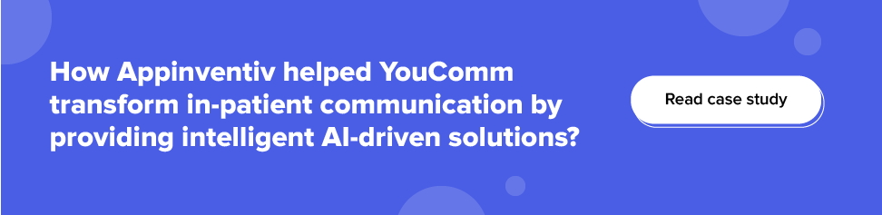 Bei Appinventiv arbeiten wir mit Gesundheitsunternehmen an verschiedenen benutzerdefinierten KI- und ML-basierten Modellen, die dazu beitragen, den Umsatz zu steigern, Kosten zu senken und ein verbessertes Kundenerlebnis zu bieten .