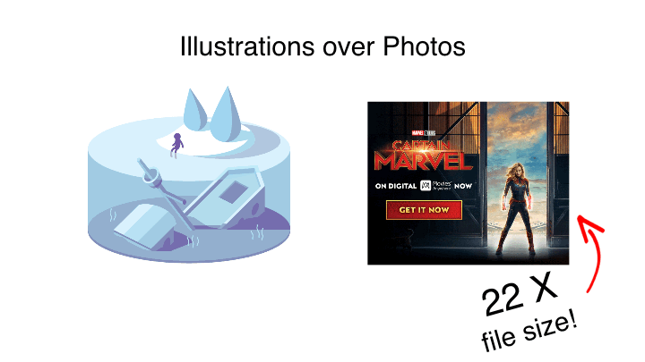 Ein weiterer Vorteil von Illustrationen mit einfachen Farben besteht darin, dass Sie mehr Bewegung und Animation mit einer geringeren Dateigröße integrieren können. Subtile Änderungen in einem Foto sind umständlicher zu laden als mehrere animierte Frames für eine Illustration, die eine Geschichte erzählt. Wenn es um die Verwendung eines Fotos geht, sollten Sie den animierten Teil isolieren. Anstatt dass das gesamte Bild ein GIF ist, können Sie die Dateigröße erheblich verringern, indem Sie alle sich nicht bewegenden Abschnitte als Bilder belassen.