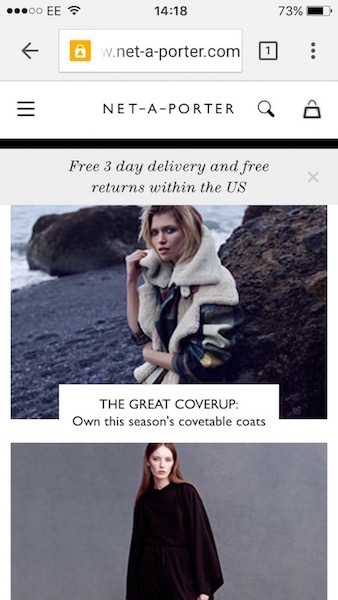 Der Luxusmodehändler ist einer der wenigen, der auf der Homepage seine kostenlose Lieferoption erwähnt.