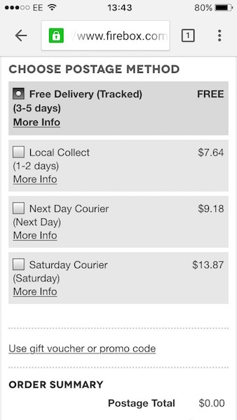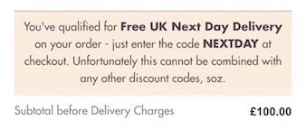 Wenn Sie die Lieferoptionen oder Preise noch nicht überprüft haben, erfahren Sie es möglicherweise erst, wenn Sie in Ihren Warenkorb schauen. Hier werden Sie vielleicht überrascht sein, die ziemlich hohe Lieferschwelle von 100 £ zu sehen.