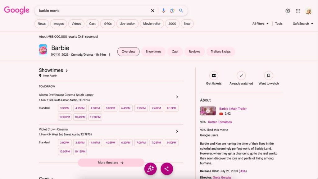 Im Vorfeld der Premiere hat sich sogar Google für diesen mit Stars besetzten Film des Sommers in Schale geworfen und für das berühmte Farbschema der Marke Rosatöne gewählt. Als der Film in die Kinos kam, erntete er großes Lob sowohl von Kritikern als auch von Zuschauern.