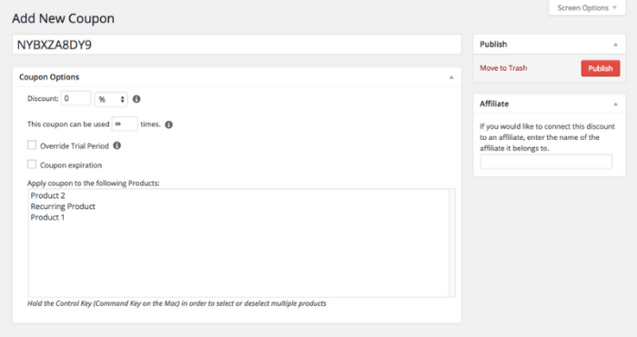Sobald Sie MemberPress mit AffiliateWP verbunden haben, werden Empfehlungen automatisch nachverfolgt und basierend auf den von Ihnen festgelegten Provisionsstrukturen ausgezahlt. Sie können jedoch auch Affiliate-Coupon-Tracking hinzufügen.