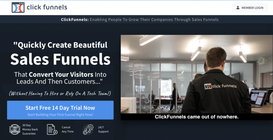 ClickFunnels ist einer der beliebtesten Sales Funnel Builder der Welt. Ohne Webentwicklung oder technische Erfahrung kann jeder einen professionellen Verkaufstrichter erstellen und damit beginnen, den Datenverkehr zu lenken und Kunden zu konvertieren.