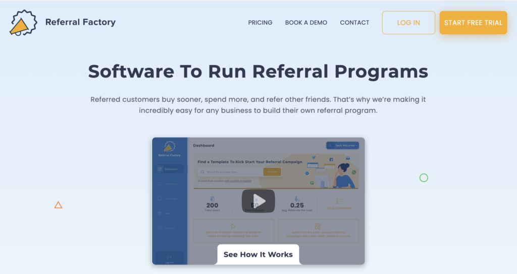 Sobald Sie bereit sind, ein neues Empfehlungsprogramm zu implementieren, benötigen Sie eine Software zur Verwaltung Ihrer Kampagnen. Wir empfehlen Referral Factory als perfekten Ausgangspunkt, da ihre Software alles bietet, was Ihr Empfehlungsprogramm benötigt, einschließlich Vorlagen, flexibler Prämien und Benachrichtigungen.