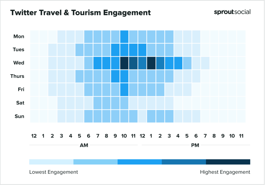- Die besten Tage zum Posten auf Twitter für Reisen und Tourismus: Dienstag und Mittwoch