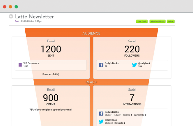 E-Mail- und Social-Media-Marketing gehen Hand in Hand, daher möchten Sie einen Anbieter, der Ihnen hilft, beides zu nutzen. Suchen Sie nach einem Anbieter, der es einfach macht, Ihre E-Mails in sozialen Medien zu teilen. Angenommen, Sie haben gerade eine Werbe-E-Mail gesendet, in der Sie Ihren Kunden 30 % Rabatt anbieten. Wäre es nicht schön, das auf Facebook zu teilen, ohne sich anzumelden und eine separate Nachricht zum Posten zu erstellen? Sicher würde es. Suchen Sie nach einem Anbieter, der es einfach macht, E-Mails auf Social-Media-Plattformen zu teilen.