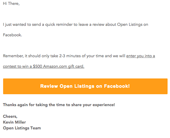 In den E-Mails erklärte Kevin, dass sie ein kleines Start-up seien, das hart daran arbeite, sich zu verbessern und zu erweitern. Er fragte die Empfänger, ob sie bereit wären, eine Amazon-Bewertung zu hinterlassen, und fügte einen Link in die E-Mail ein, der sie direkt zur Bewertungsseite führte, um verbleibende Reibungen zu beseitigen. Das war es. Real. Ehrlich. Menschlich.