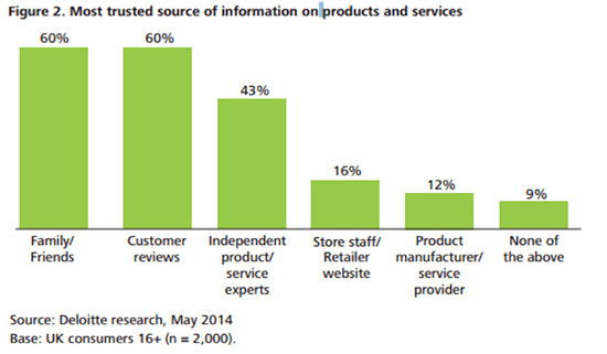 - Als Informationsquelle für Produkte und Dienstleistungen zählen Bewertungen neben Familie/Freunden zu den vertrauenswürdigsten