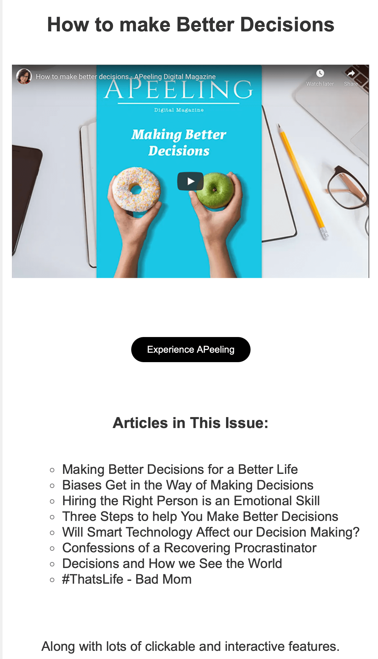 Dies ist eine kalte E-Mail mit einer einfachen Überschrift und einem Video, in dem das Thema diskutiert wird. Es enthält auch Links zu Artikeln, die sich mit dem Kernthema „bessere Entscheidungen treffen“ befassen. Es funktioniert, weil es kurz und umsetzbar ist und den Lesern eine Liste mit Blog-Links gibt (potenzieller Traffic, der zu Leads werden kann).