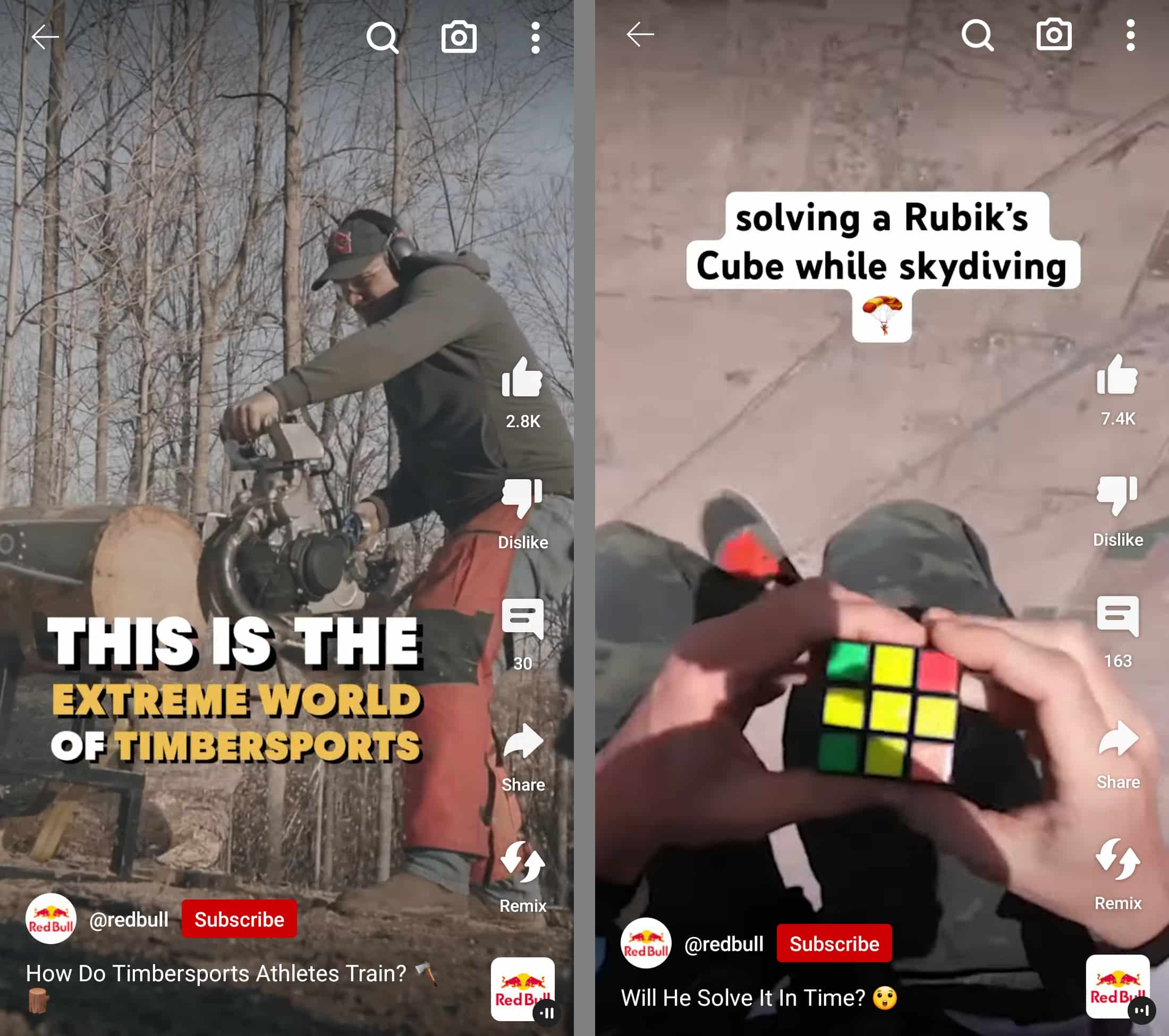Das Red Bull-Marketingteam postet viele Videos der Marke auf mehreren Social-Media-Plattformen. Durch das Teilen auf YouTube, TikTok und Instagram kann die Marke ihre Inhalte noch besser nutzen und gleichzeitig ein Publikum über alle Kanäle hinweg aufbauen.