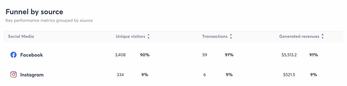 Da jeder UTM-Code mit einer Kampagne verbunden ist und mehrfach verwendet werden kann, können Sie sowohl Kampagnen- als auch Beitragsmetriken verfolgen. Agorapulse ordnet beiden automatisch relevanten Website-Traffic, Transaktionen und Umsatz zu.