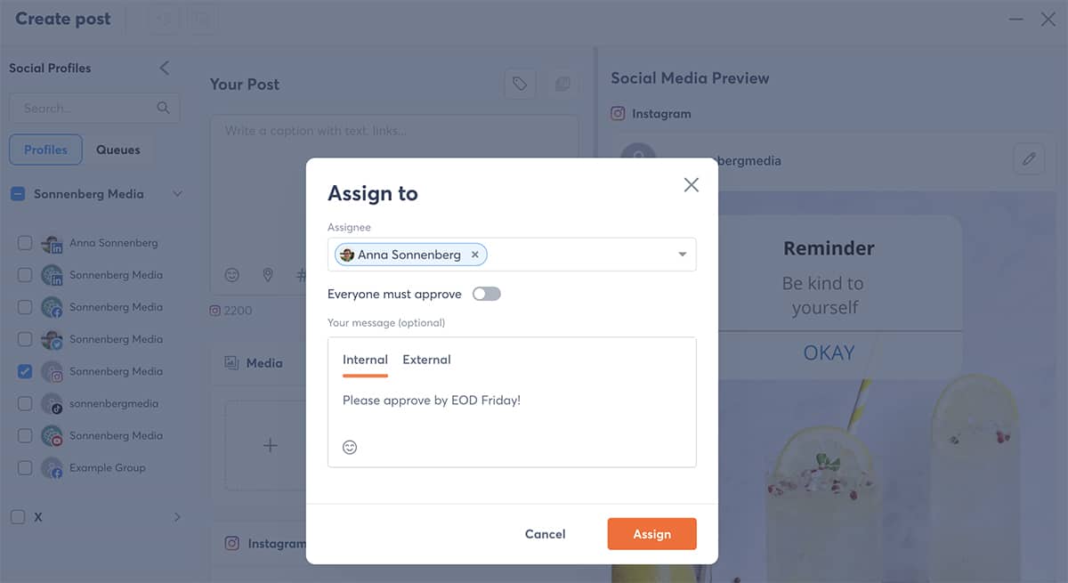 Benötigen Sie mehrere Teammitglieder, die zu Beiträgen wie diesen beitragen? Mit Agorapulse können Sie Social-Media-Inhalte entwerfen und eine Überprüfung von internen Teammitgliedern anfordern. Sobald sich alle abgemeldet haben, werden die Inhalte wie geplant veröffentlicht.