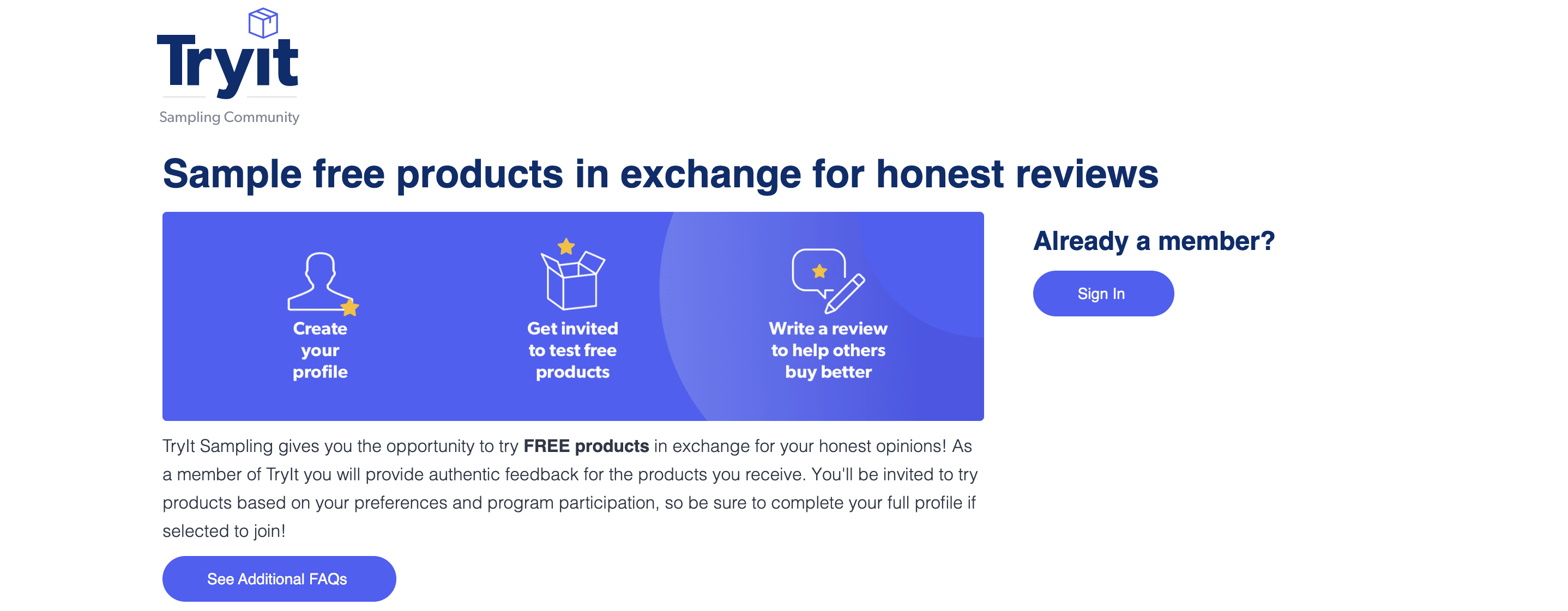 Melden Sie sich als Tester an und vervollständigen Sie Ihr Profil, um loszulegen. Möglicherweise wird Ihnen die Möglichkeit angeboten, kostenlose Artikel auszuprobieren oder aufgrund Ihrer demografischen Daten erhebliche Einsparungen im Gegenzug für Ihre Meinung zu erzielen.