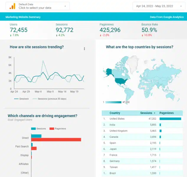Hier sind nur einige Beispiele für die Art von Daten, die Sie mit Looker Studio in Berichten anzeigen können: