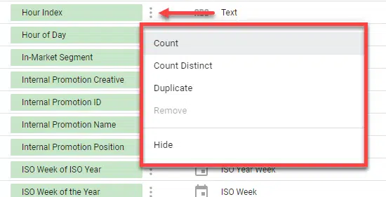Wenn Sie neben jedem Feld auf das Drei-Punkte-Menü klicken, können Sie Änderungen an einzelnen Feldern vornehmen – wie Duplizieren, Ausblenden, Entfernen und mehr.