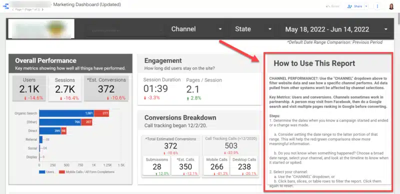 Wenn Sie Ihren Kunden Looker Studio-Berichte zur Verfügung stellen, ist es schön, dem Kunden einen Abschnitt im Bericht zur Verfügung zu stellen, der erklärt, wie der Bericht gelesen/verwendet wird.