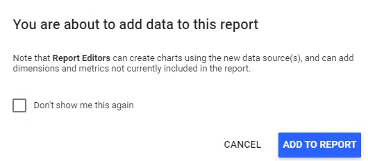 Sie werden dann aufgefordert/benachrichtigt, dass Sie im Begriff sind, Daten zum Bericht hinzuzufügen. Klicken Sie auf Zum Bericht hinzufügen.