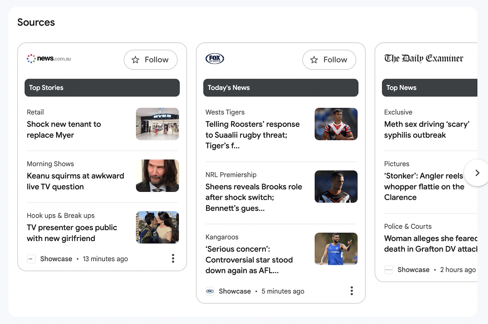 Diese Auswahl wird in Google Discover und auf allen Google News-Oberflächen in einem Quellenbereich angezeigt.