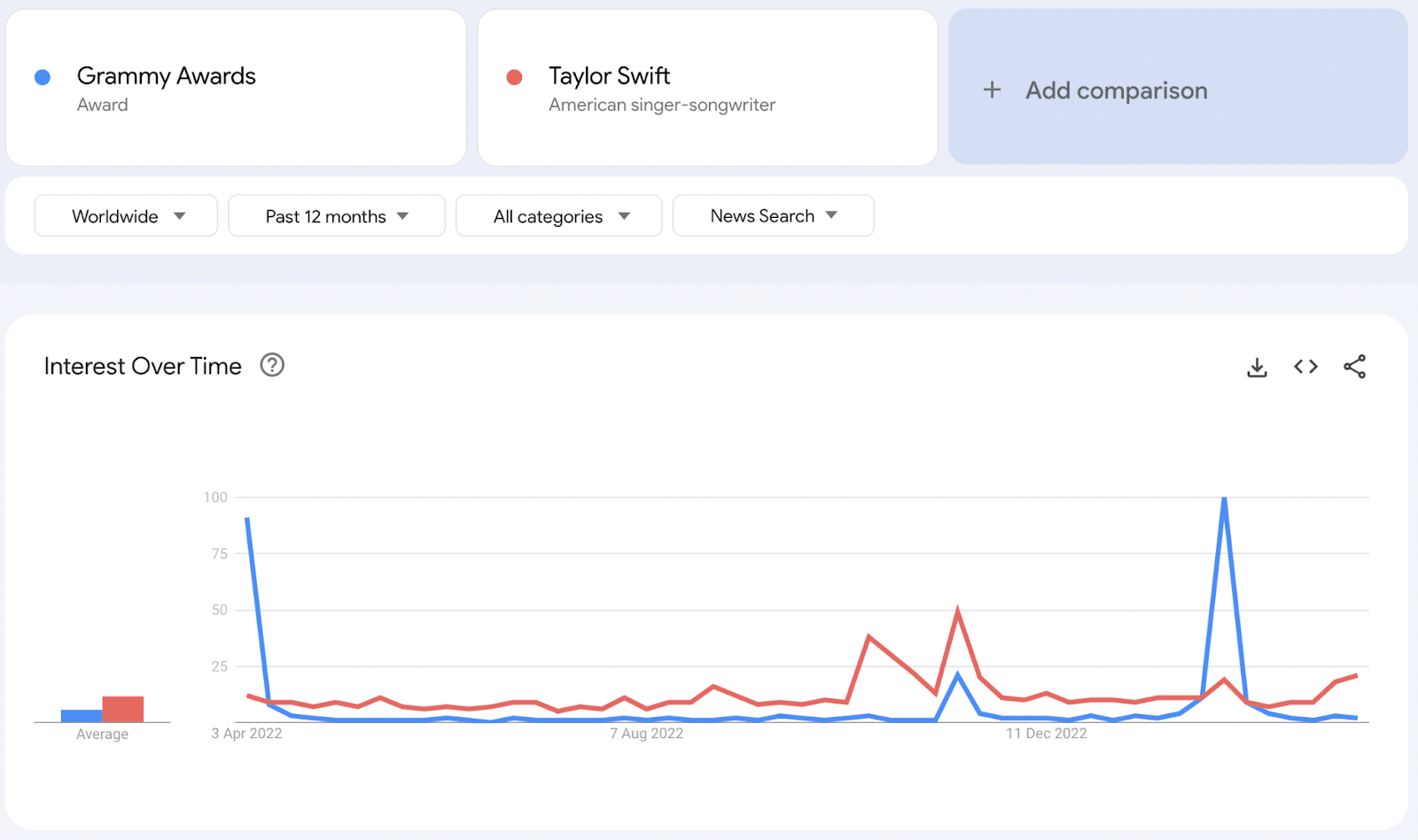 Wählen Sie in „Erkunden“ die Option „Nachrichtensuche“, um Themen mit konstantem Nachrichteninteresse zu identifizieren, z. B. Namen von Prominenten, oder wenn vorhersehbare Themen, wie z.