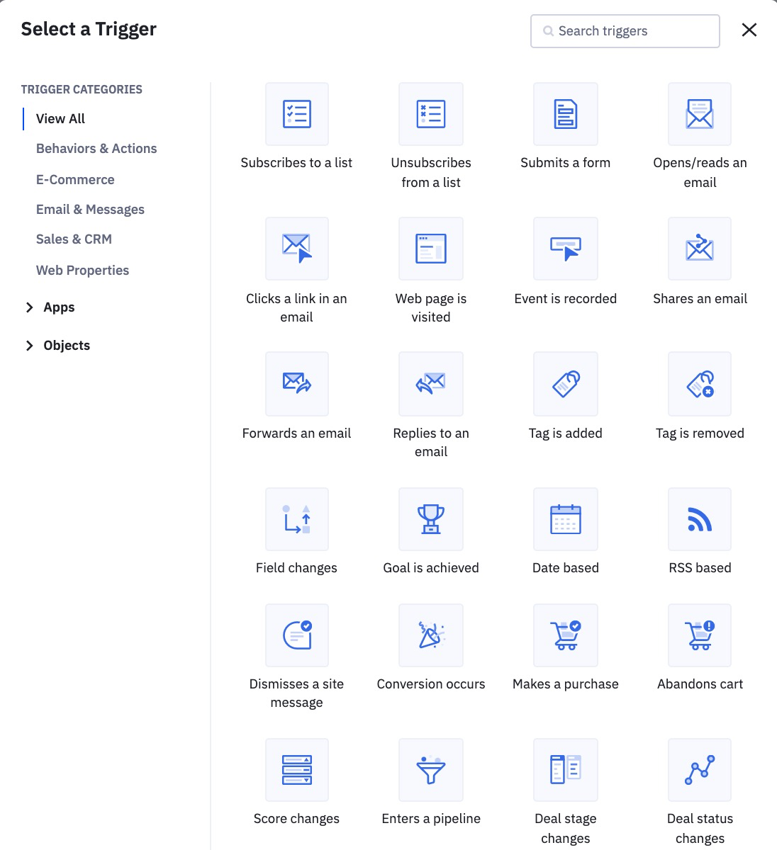 Automatisierungshersteller sind unterschiedlich. Aber hier sind die Dinge, die eine Automatisierung in ActiveCampaign auslösen können:
