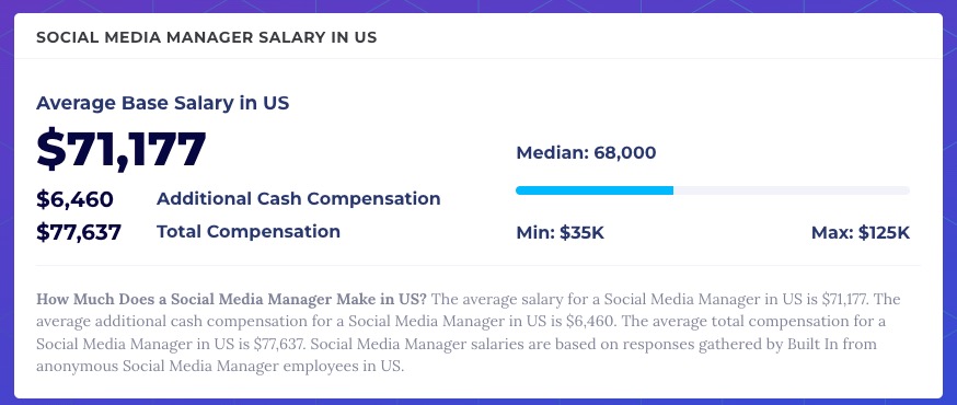 Dies kann auf das Engagement des Publikums oder die Möglichkeiten zur Erstellung von Inhalten zurückzuführen sein. Was auch immer der Fall ist, diese soziale Leistung spiegelt sich oft im Verdienstpotenzial eines Social-Media-Managers wider.