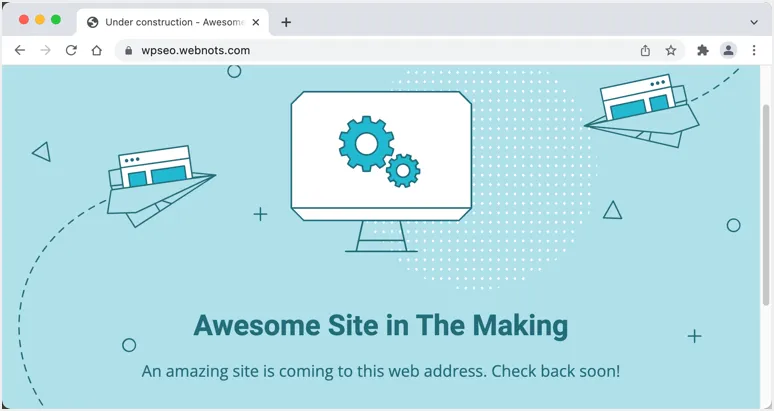 Öffnen Sie Ihre Subdomain in einem neuen Browser-Tab, um den Status zu überprüfen. Sie werden eine im Aufbau befindliche Seite wie unten sehen, die anzeigt, dass die Site in Arbeit ist.