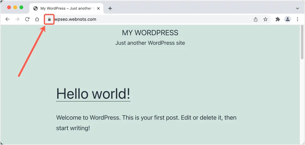 Öffnen Sie nun Ihre Subdomain und überprüfen Sie, ob sie mit einer gesicherten HTTPS-Verbindung verbunden ist.
