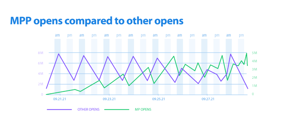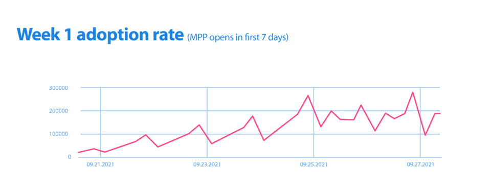 Die untenstehenden Daten beziehen sich auf den 20. bis 27. September. MPP hat sowohl Google Mail- als auch Apple-Benutzer gleichermaßen beeinflusst.