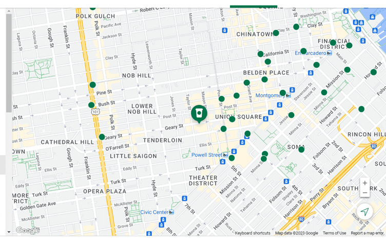 Die weltweit bekannte Kaffeehauskette Starbucks verfügte im Jahr 2022 über 9.265 firmeneigene und 6.608 lizenzierte Geschäfte in den Vereinigten Staaten. Allein in San Francisco gibt es 93 Starbucks-Filialen.