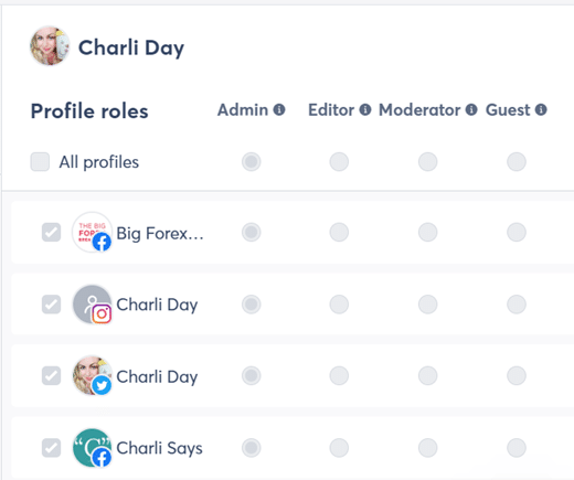 - Editor. Ein Redakteur kann Inhalte genehmigen und veröffentlichen sowie Berichte erstellen. Sie können keine Teammitglieder einladen oder Social-Media-Profile hinzufügen.