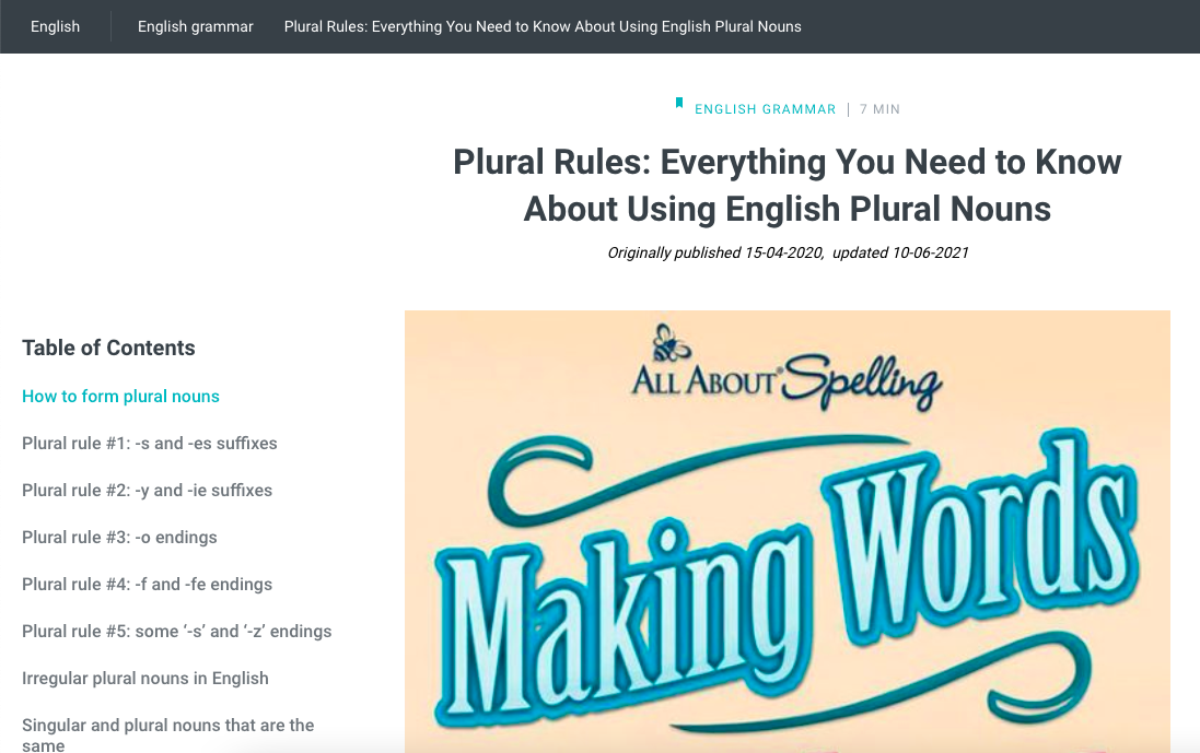 Schauen Sie sich diesen Blog an, in dem es um die Verwendung englischer Nomen im Plural als Beispiel geht: