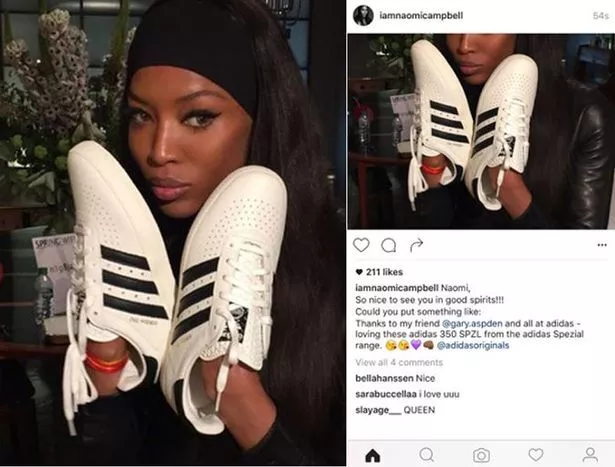 „Naomi, so schön, dich in guter Stimmung zu sehen“, hieß es ursprünglich in dem Post und fügte hinzu: „Könntest du etwas schreiben wie: Danke an meinen Freund @gary.aspden und alle bei adidas – ich liebe diese adidas 350 SPZL aus der adidas Spezial-Reihe. @adidasoriginals.“