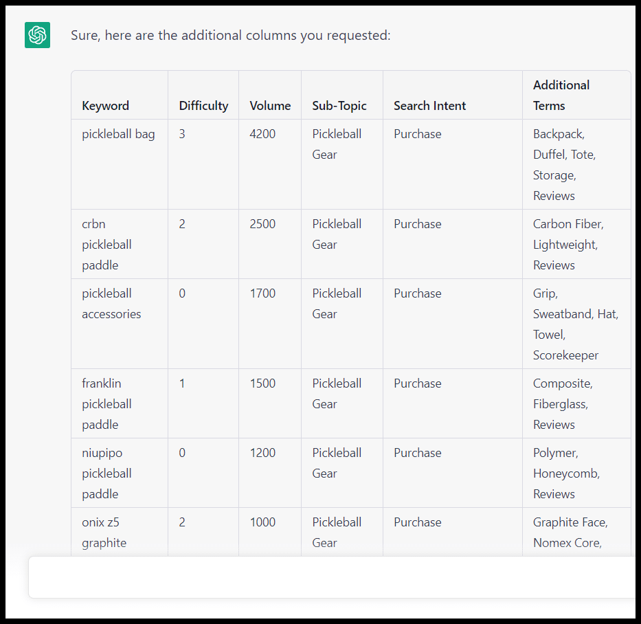 Während Sie eine Liste mit Themen und Keyword-Zielen erstellen, können Ihnen die richtigen ChatGPT-Eingabeaufforderungen dabei helfen, weitgehend unerschlossene Keyword-Plätze zu finden.