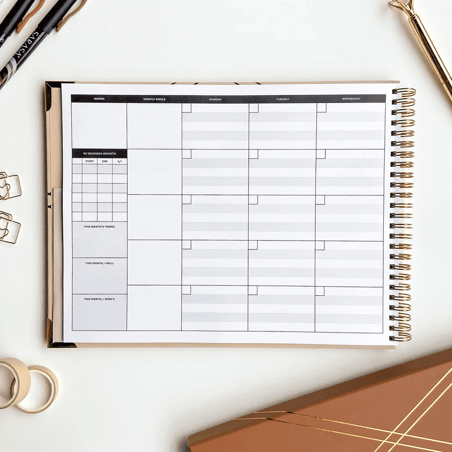 Als nächstes auf der physischen Seite der Planeroptionen: ein Marketingplaner im Notizbuchstil. Dies ist eine tragbare, kompakte Version eines gedruckten Papierplaners. Sie sind bei Solo-Bloggern und Unternehmern sehr beliebt, und Sie können sogar inhaltsspezifische Planer auf dem Markt finden. Hier ist einer von The Content Planner: