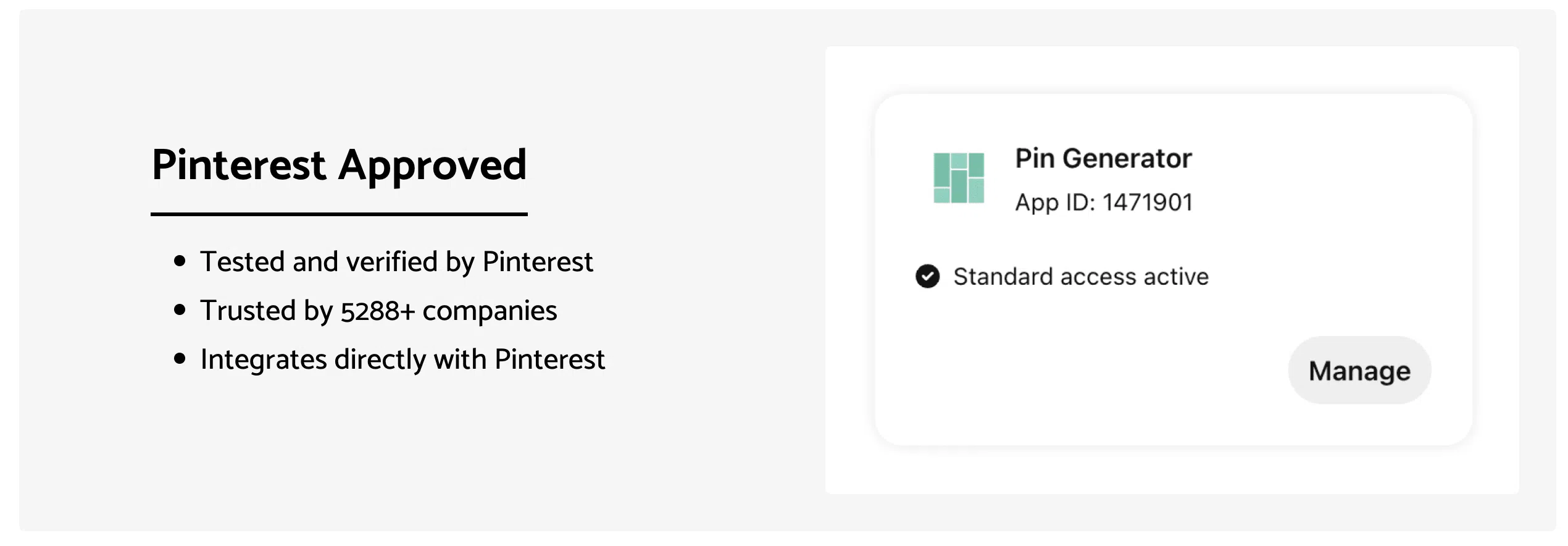- Von Pinterest zugelassene Software für die sichere und einzigartige Pinterest-Pin-Generierung.