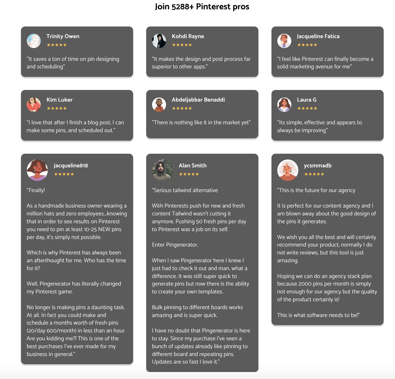 Der Pin-Generator genießt das Vertrauen zahlreicher Unternehmen und zeichnet sich dadurch aus, dass er schnelle Funktionen zur Pin-Generierung bietet und das Engagement auf Pinterest optimiert.