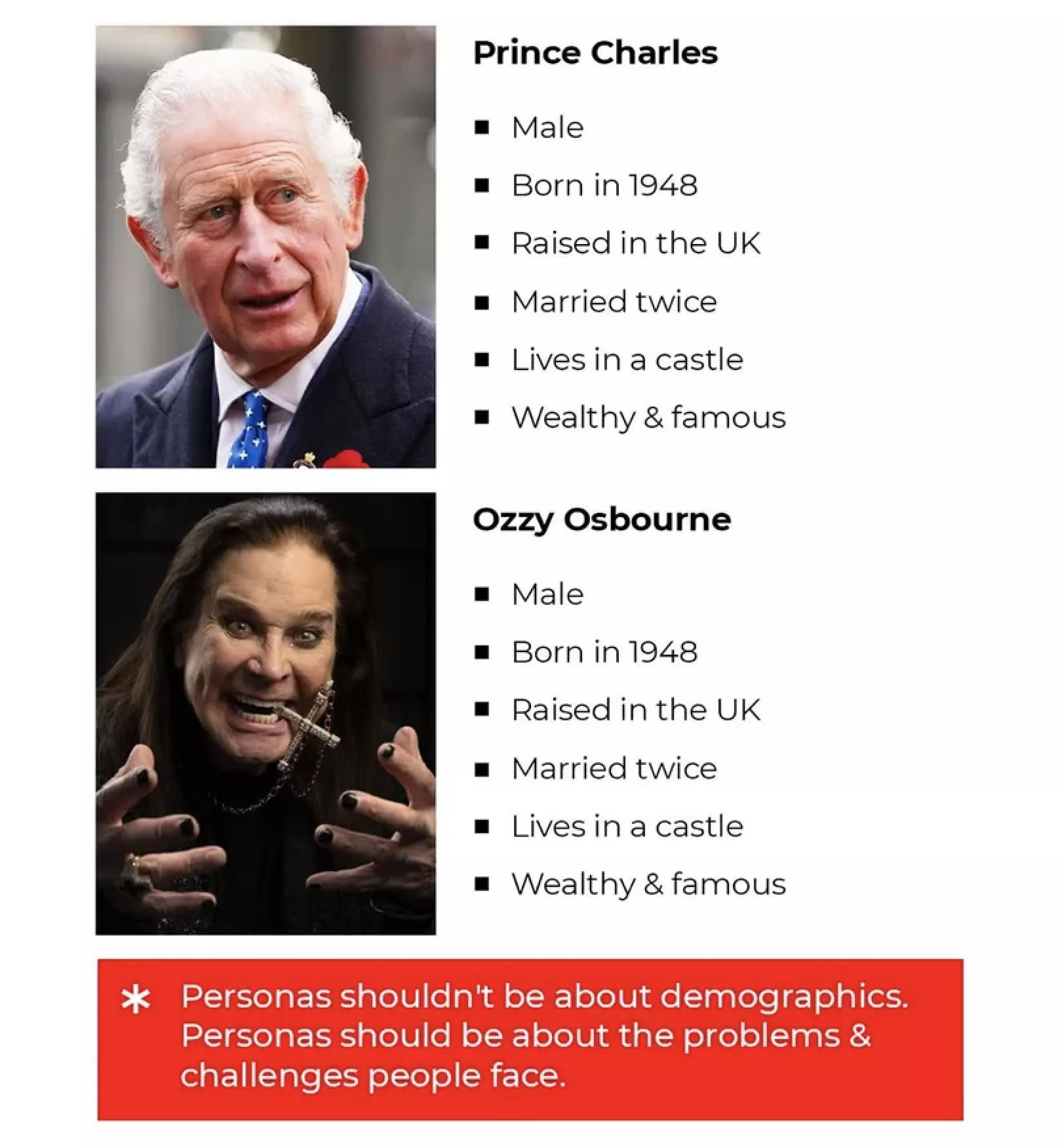 Denken Sie jedoch daran, dass es bei Personas nicht um Demografie geht, sondern darum, mit welchen Problemen Menschen konfrontiert sind und wie Sie ihnen bei der Lösung dieser Probleme helfen können.