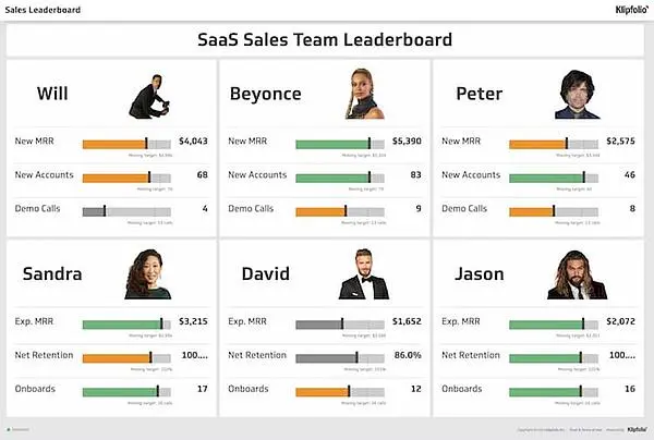 Die genauen Kennzahlen, die Sie in Ihrem Verkaufs-Dashboard anzeigen, sollten von Ihren Bedürfnissen und den Personen abhängen, die es anzeigen. Beispielsweise werden Ihre Vertriebsmitarbeiter, Vertriebsleiter, Partner und Investoren alle unterschiedliche Dinge sehen wollen.
