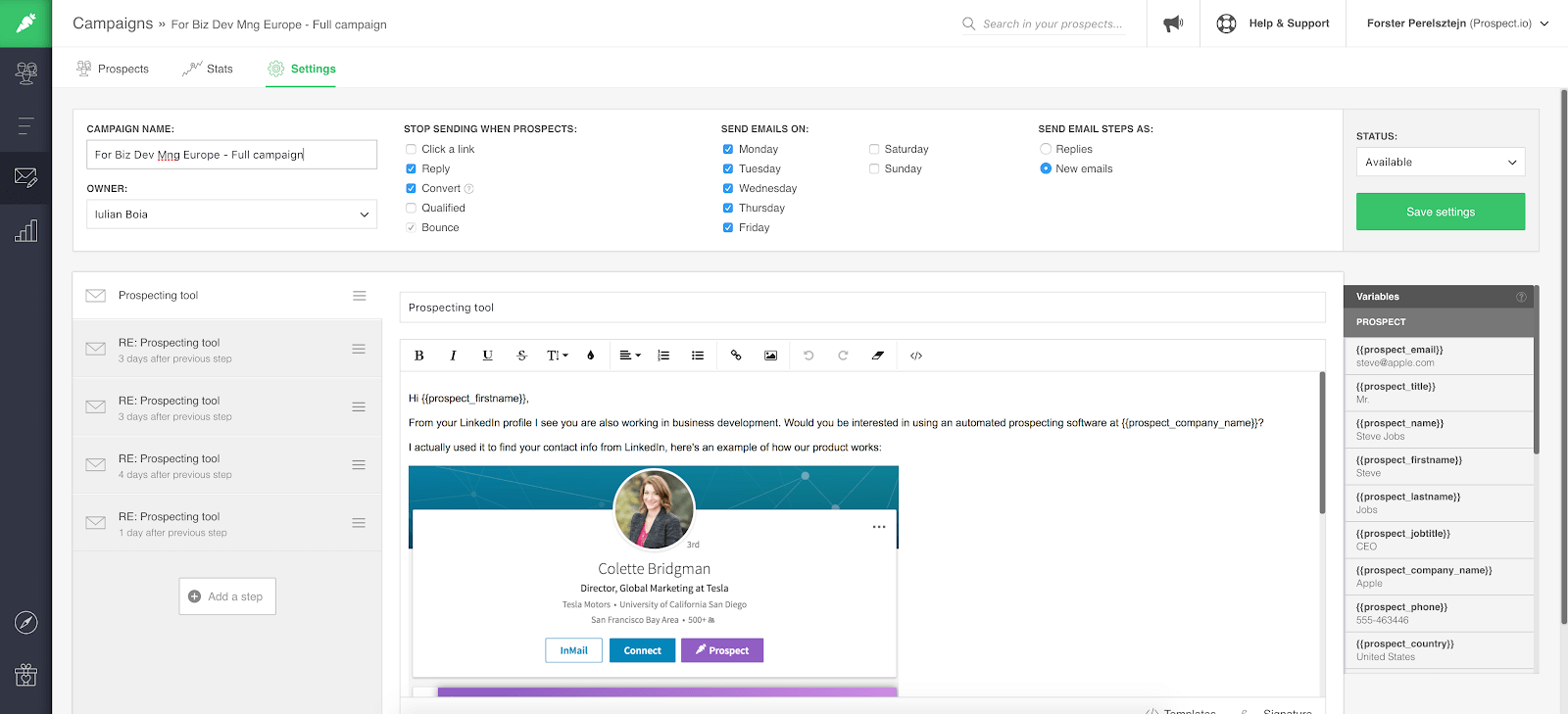 Die Analysetools von Prospect.io ermöglichen es den Benutzern auch, ihre Bemühungen so genau wie möglich zu messen, jeden Aspekt der Kampagnen zu berücksichtigen und sie sogar darüber zu informieren, wie sie im Vergleich zu anderen Unternehmen in ihrer Branche abschneiden.