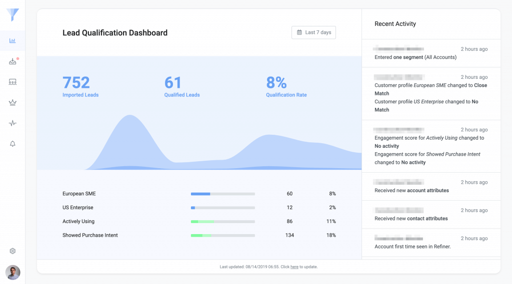 Refiner ist eine Lead-Qualifizierungssoftware, die B2B-SaaS-Unternehmen mit einem Self-Service-Modell hilft, durch den Abschluss hochwertigerer Geschäfte in den gehobenen Markt vorzudringen. Durch die Nutzung von Datenanreicherung und Verhaltensverfolgung,