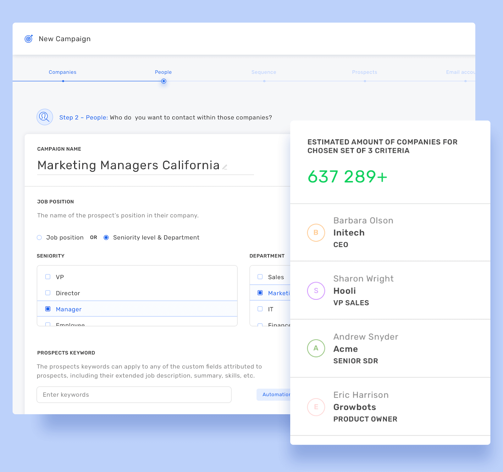 Die Plattform generiert dann eine Interessentenliste, die aus allen Entscheidungsträgern besteht, die Ihrem idealen Kundenprofil entsprechen.